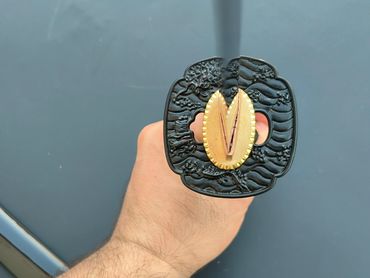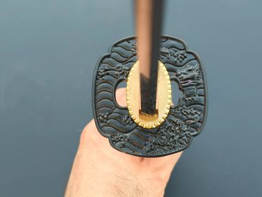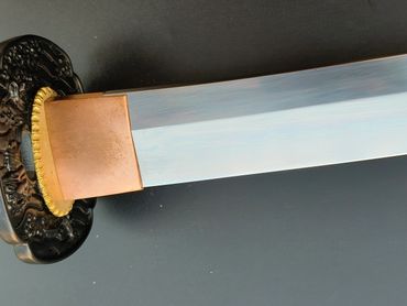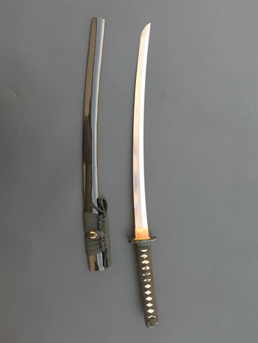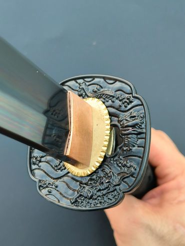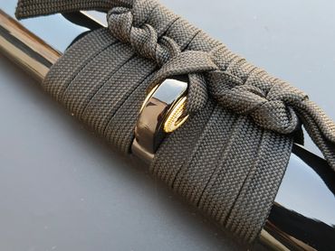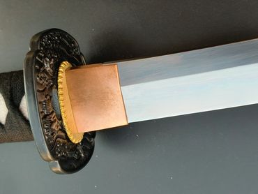 Budokan Wakizashi is designed to fit a Budokan Commemorate tsuba in LK Chen's collection. The compact size of the tsuba make a great piece for a wakizashi. The rest of the fittings follows the designed elements of the tsuba.