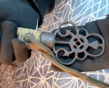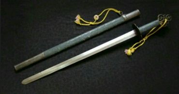 Precision cast steel fittings. The hand guard is a 4 loop disc design, known as papaya style disc guard. The pommel is a Ming unique 6 loops open metal work gourd design. Minimalist cast steel scabbard fittings offer a visual contrast to the elaborate pommel and disc guard.
