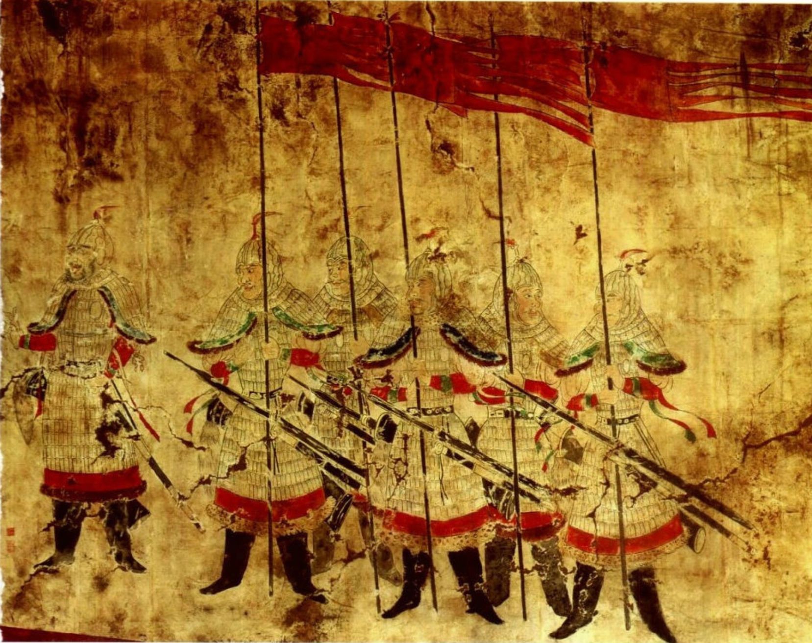 This 2 point suspension system allow the sword to hung at 45 degree or more and was first adopted in China during the Northern Dynasties. Since then it was used throughout the Sui and Tang Dynasties until today