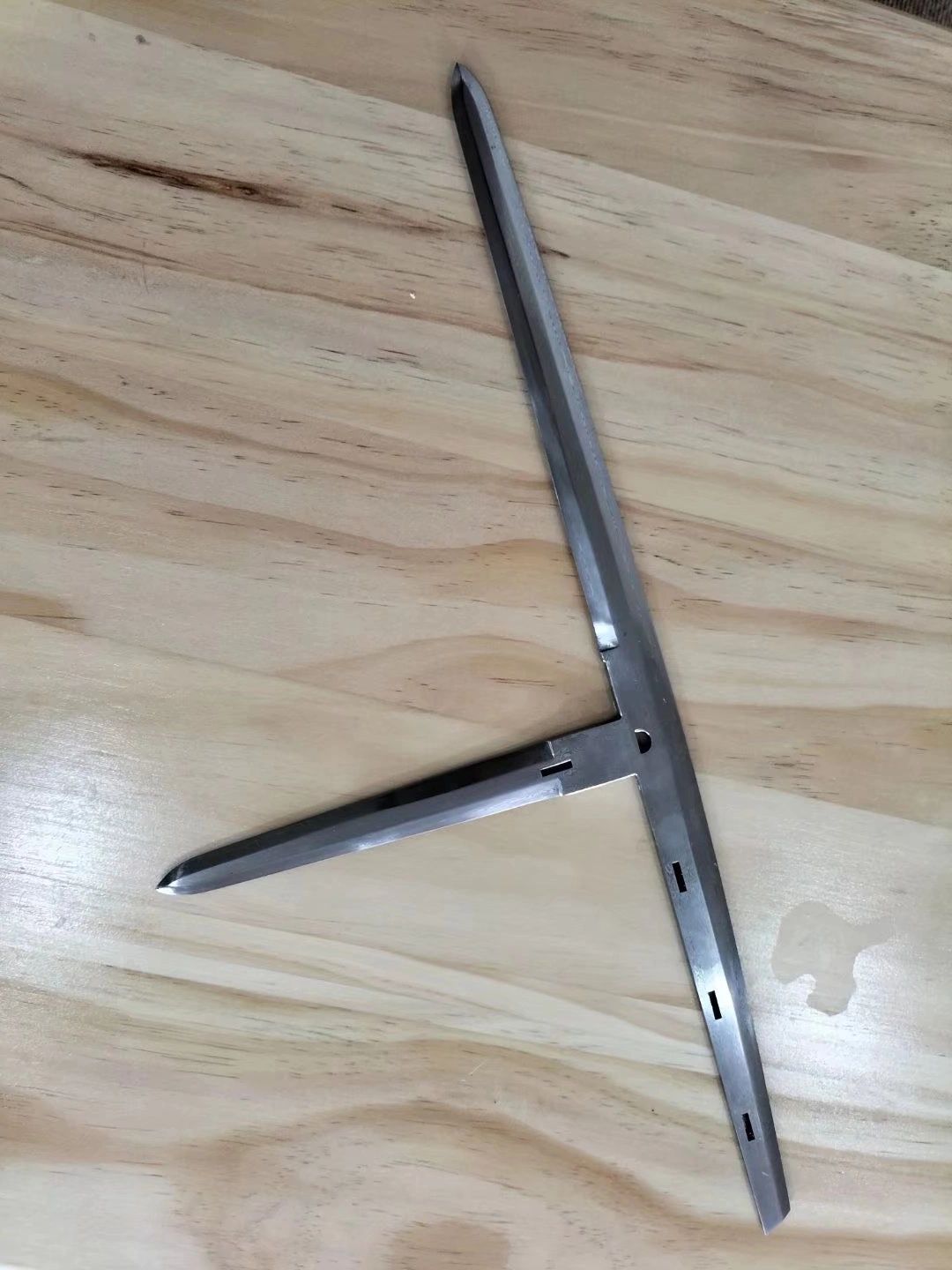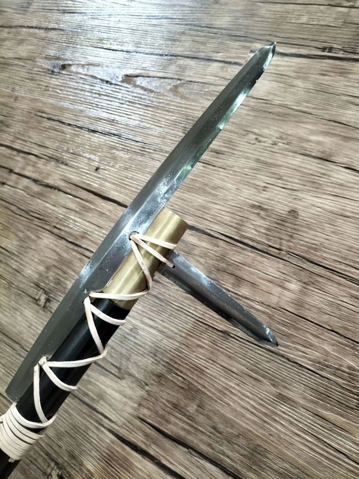 Here we present two high fidelity recreation of Han Dynasty "T shaped Ji". Each Ji is hand forged and welded with pattern steel to recreate the precision machine like design of the original. Every notch, every holes, every edge is functional and Han Ji is one ancient engineering marvel.