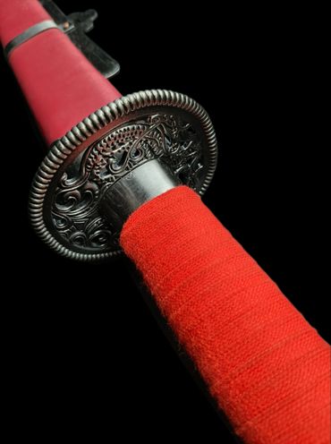 Red cotton cord wrapped handle model after the intact hilt wrapping of a Ming Dynasty Imperial Guard's Dao
