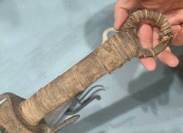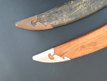 Scabbard steel fittings faithfully recreate the original design from antiques