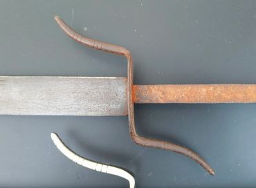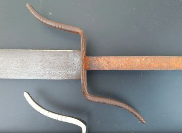 Hand guard has a characteristic reverse S shape with a bamboo notch decoration