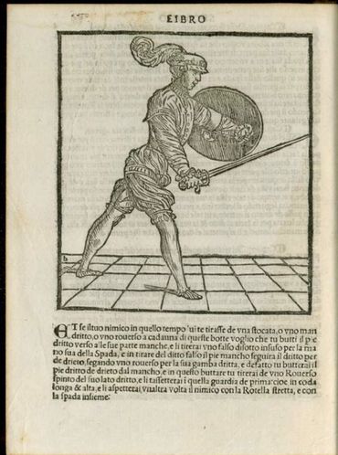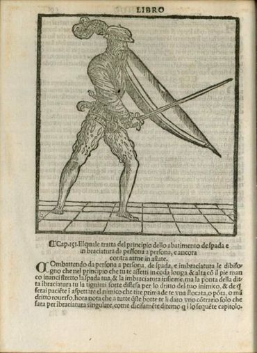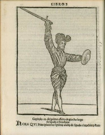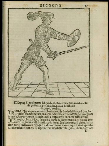 "Ribaldo" is the name of Italian skirmisher troops who would have used this sort of type XIX sword at early 15th century. In art the "Ribaldo" troops are often seen with light armor, a shield and a spear and with this type of arming sword.