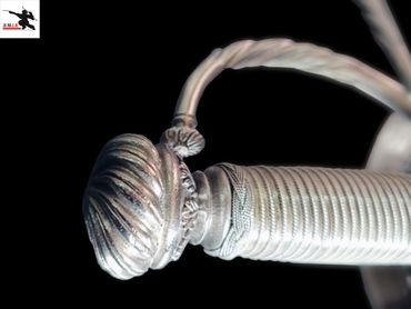 Handle wrap: Steel wire wrapped around a sculptural synthetic core with "Turkish head" wire knots decorated on both end of the handle.