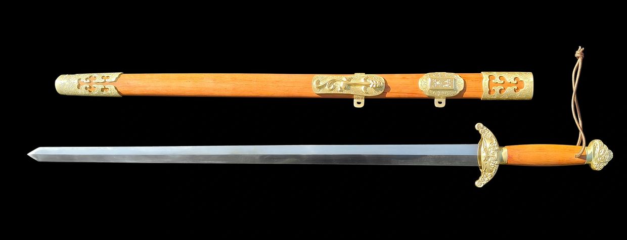 This powerful cutting jian features a wider then usual blade and an impressive triangular pointed tip 圭形, a popular choice for late Ming and Qing dynasty jian.