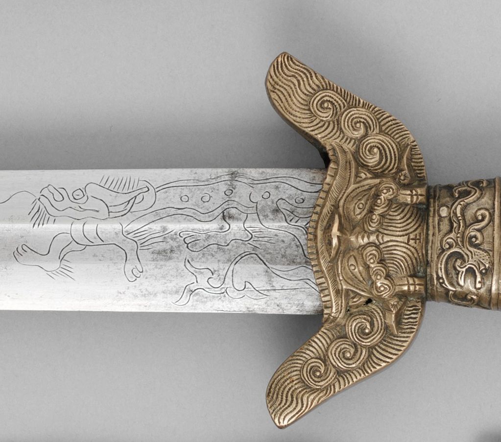 Ya Zi carving on the blade and hand guard of a Qing Dynasty Jian. New York Metropolitan museum of Arts